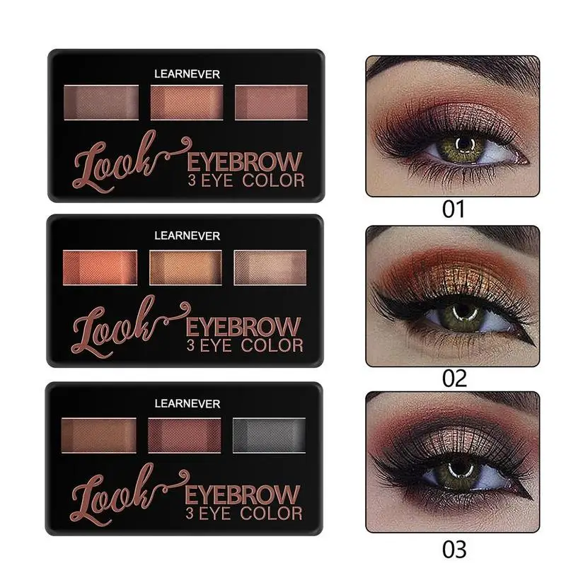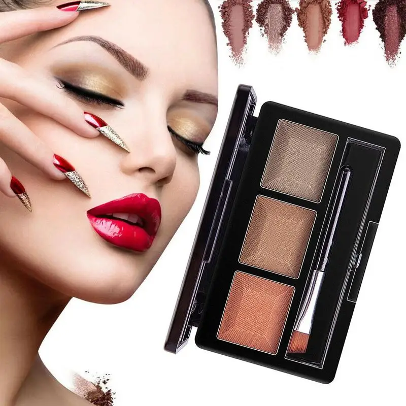 .image of 3 Colors Waterproof Eyebrow Powder Palette Shade For Eyebrows Enhancer Cosmetic Brush Mirror Box Ma